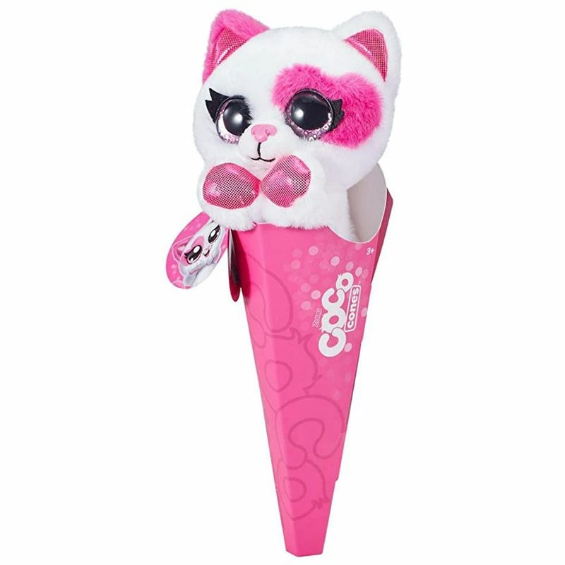 Kos og lek med de søte Coco Cones Surprise plysjbamsene. Hver bamse kommer i en kjegleformet innpakning og inne i pakningen får du en spennende overraskelse! Hvert dyr kommer med store glitrende øyne og sterke, flotte farger som gjør dem enda mer magiske! Inni pakken sammen med din nye Coco Cone plysjbamse finner du en søt liten samlefigur. Coco Cones Surprise bamsene har 11 forskjellige søte karakterer å samle på!