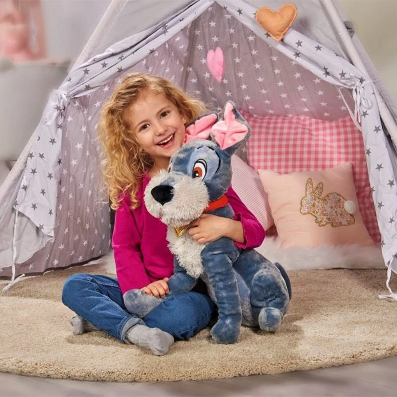 Kos, klem, og lek med den søte Landstrykeren plysjbamsen, inspirert fra ‘Lady og Landstrykeren’ Disney filmen! Den myke bamsen kommer i en grå farge med store øyne og et vennlig ansikt.