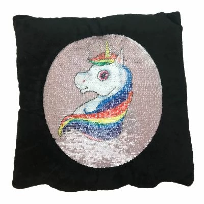 Deilig og myk plysj pute med nydelig enhjørning motiv av paljetter. Ved å dra paljettene opp endrer du motiv. Puten måler ca 38cm x 38cm. Anbefalt alder: 3+