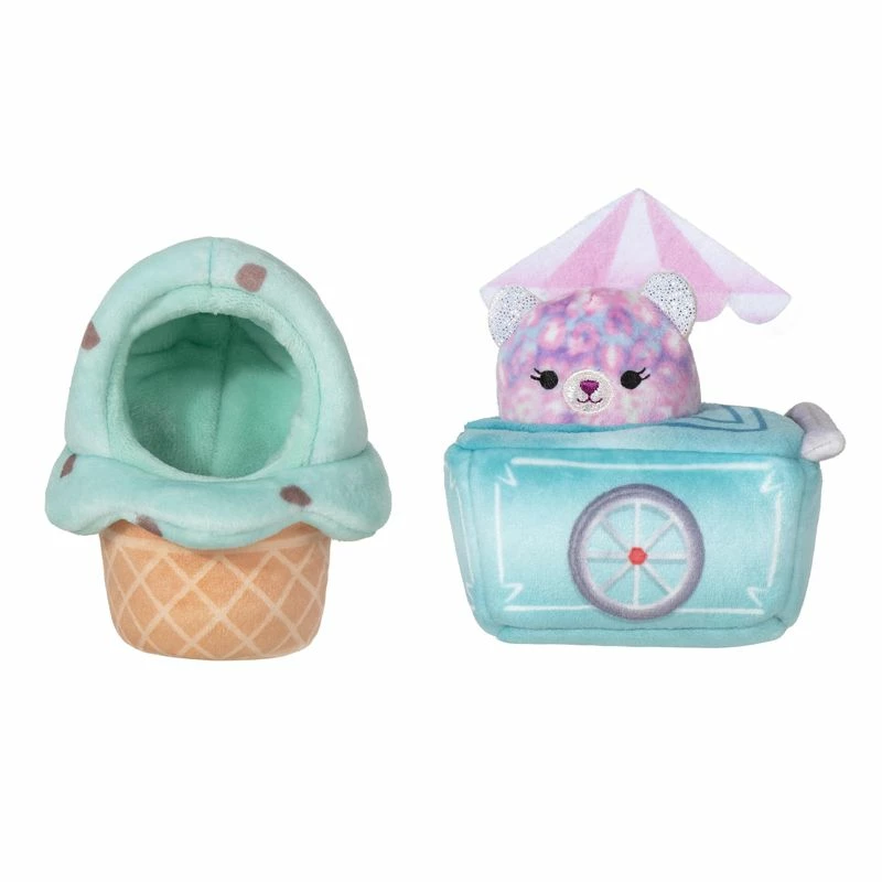 Skvis deg inn i Squishville – en verden av plysjleker fylt med favorittvennene dine fra Squishmallows – i miniatyr. Denne søte plysbamsen kommer med et flott prikkete mønster og har en iskrem og iskremdisk som den kan sitte inni. Utvid squishverdenen din med disse tilbehørssettene som består av tematilbehør og 1 Squishmallows-plysj. Det er 2 forskjellige temaer du kan samle på.